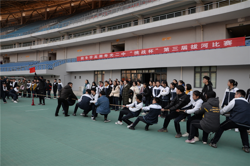 为丰富同学们的精神文化生活,进一步激发学习激情,增强班级凝聚力,12月11日,我校高一、高二级部分别在城投体育场、学校篮排球场举行第三届“挑战杯”掀冬学高潮拔河比赛。