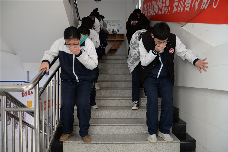9点40分,演练活动正式开始。首先,学校安全保卫处张法山主任通过广播系统简明扼要地介绍了此次演练的目的及要求。随后,各班班主任带领学生捂住口鼻,按演练要求沿着楼梯快速前进,有序撤离到学校安全区域。最后,学校安全保卫处张法山主任对本次消防安全演练做了总结发言。