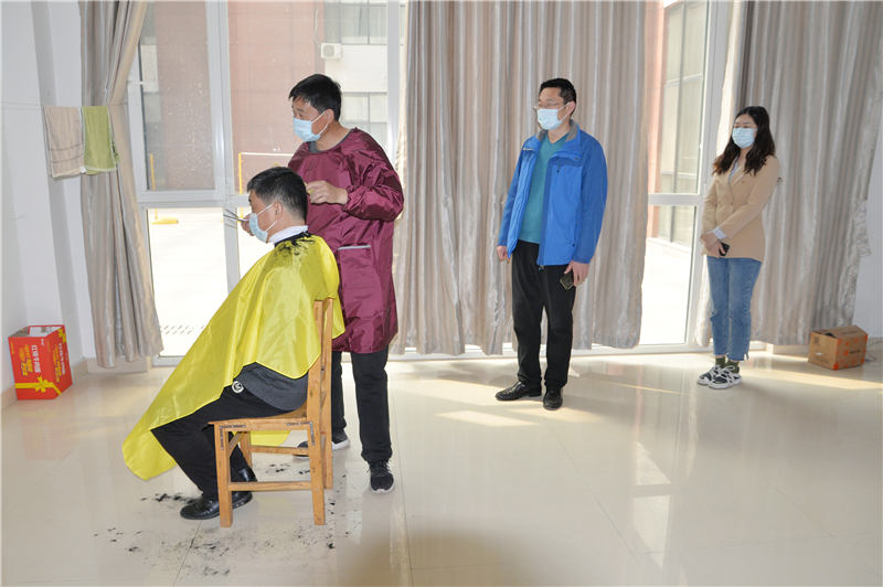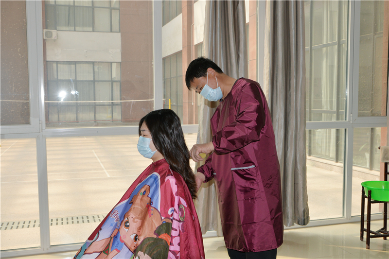 师生无小事,枝叶总关情。为解决封闭管理给老师们带来的生活不便,我校从细节小事做起采取了一系列暖心关爱措施。为了解决住校教师的理发问题,学校领导了解到,总务处的王久亭师傅有多年的理发经验,在与王师傅沟通后,学校便在合德楼一楼北111室开设临时理发室,虽然不像专业理发店那样温馨舒适,但洗发水、香皂、热水、毛巾等理发用品配置齐全,所有的理发用具实行一人一消毒,确保安全到位。