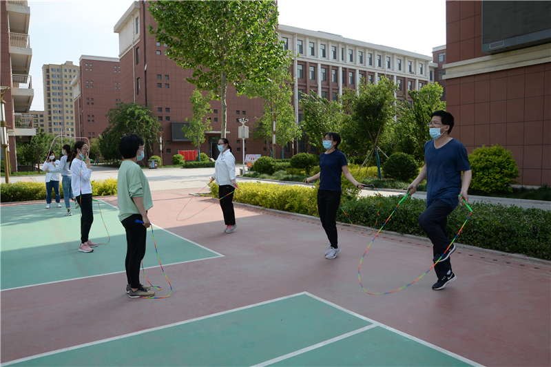 本次比赛以“安全第一、快乐为主”主题,在抗击疫情、封闭校园大背景下,为了避免人员大范围聚集,七个项目分别在五个场地举行,不设集体项目,参赛教师全程佩戴口罩,不扎堆、不聚集。下午3点30分,比赛正式开始:合德楼五楼乒乓球活动室里,常老师跟杨老师正在展开激烈的“厮杀”;象棋社里,张老师连赢两局,势头正猛;合德楼一楼的羽毛球活动大厅里,张林萍、刘彦男两位老师正在上演“巅峰”对决;篮排球场地上,丁老师的定点投球又快又准;李莉、胡爱霞老师的跳绳越飞越快,宛如一道彩虹;赵振林老师更像一位踢毽子的魔术师,毽子在他的脚上乖乖听话、上下纷飞;台球活动室内,李敬伟老师将最后一颗球送入网袋,险胜对手后不禁振臂握拳……
