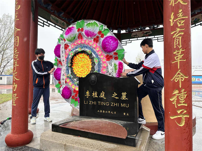 活动中,学生代表李植庭先生墓敬献花圈并集体默哀学生代表向全体同学发出倡议,希望同学们牢记革命先烈的丰功伟绩,学习革命先烈的优秀品质,树立远大理想,以吾辈之青春,护卫盛世之中国。