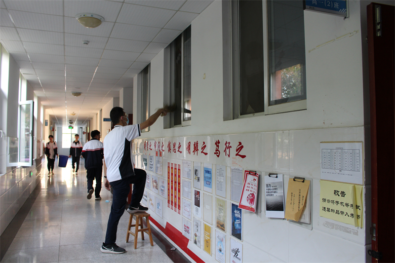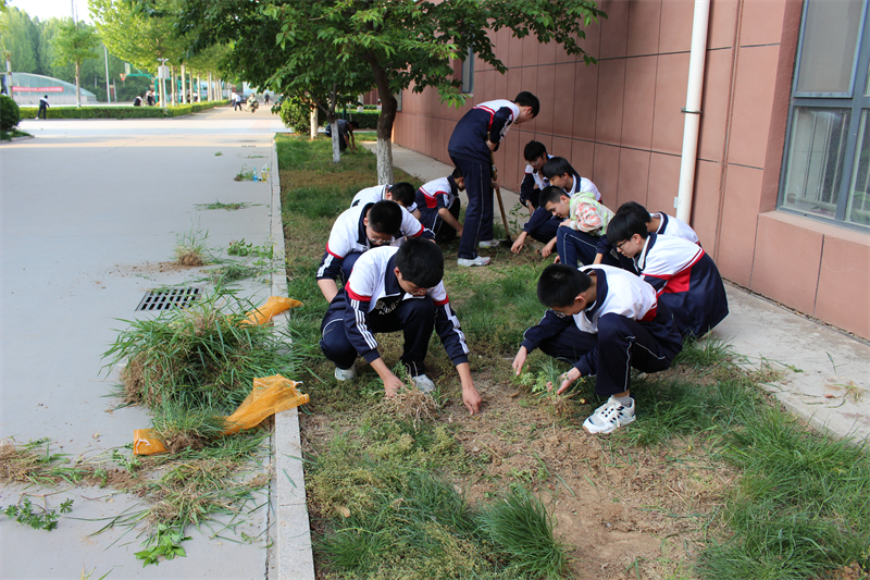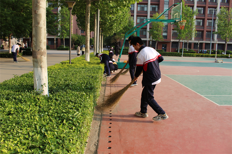 4月27日下午,随着下课铃响起,安静的校园顿时热闹起来,同学们根据分工,迅速投入到劳动课中来。教室里,同学们清扫地面,擦拭窗户、灯具、风扇,每个角落都打扫的干干净净;宿舍里,同学们拖地、擦洗脸盆,整理床底、橱柜,每个宿舍都收拾的整整齐齐;校园里,同学们清理落叶、杂草、垃圾,草坪里、绿化带旁、大树下,处处呈现出一派热火朝天的劳动景象,每一条道路都一尘不染,每一处花圃都干净整洁,生机盎然。