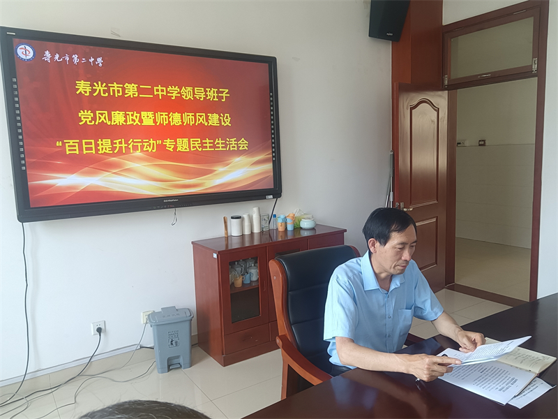 会前,学校领导班子深入开展了学习研讨,全面准确学习领会《寿光市委第一巡察组关于巡察寿光市第二中学党委的反馈意见》和《寿光市教育系统党风廉政暨师德师风建设“百日提升行动”实施方案》提出的各项要求,广泛征求党组织、党员、群众等方面的意见建议,同时主要负责同志带头深入开展谈心谈话,在找准找深突出问题的基础上,认真撰写领导班子和班子成员个人发言提纲。