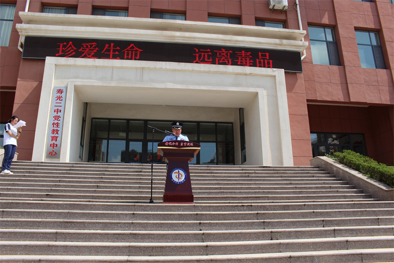 今年6月26日是第36个国际禁毒日,为营造浓厚的禁毒教育氛围,发挥学校在毒品预防教育活动中的重要作用,使广大教师、学生认清毒品的危害,进一步增强防毒、拒毒意识,26日上午,寿光二中举行“珍爱生命,远离毒品”主题升旗仪式,寿光市公安局禁毒大队教导员郝军到校为全体师生做禁毒教育报告。