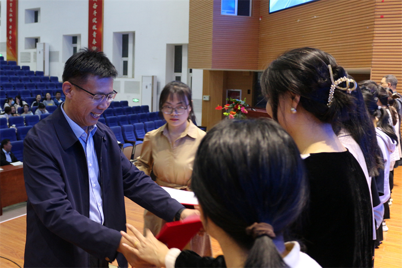 随后,在郝来勋副校长的主持下,青年教师向师傅们行拜师礼,深深鞠躬,寄托了徒弟对师傅的无限敬意和感谢;深情拥抱,饱含了师傅对徒弟的殷切期盼和厚望。指导老师王平之代表全体师傅表态,定会以身作则,引领青年教师不断提高思想觉悟和师德修养,并将自己的工作经验和育人智慧毫无保留地传授给徒弟们,在师徒帮带中实现共同进步。青年教师孙文婷代表全体青年教师表态,将虚心接受师傅和老教师们的教导,用成长、成熟、成才不断激励自己前进,用良心、耐心、爱心陪伴学生们走过成才的关键时刻,用优异的成绩交出一份份令学校和师傅们满意的答卷。
