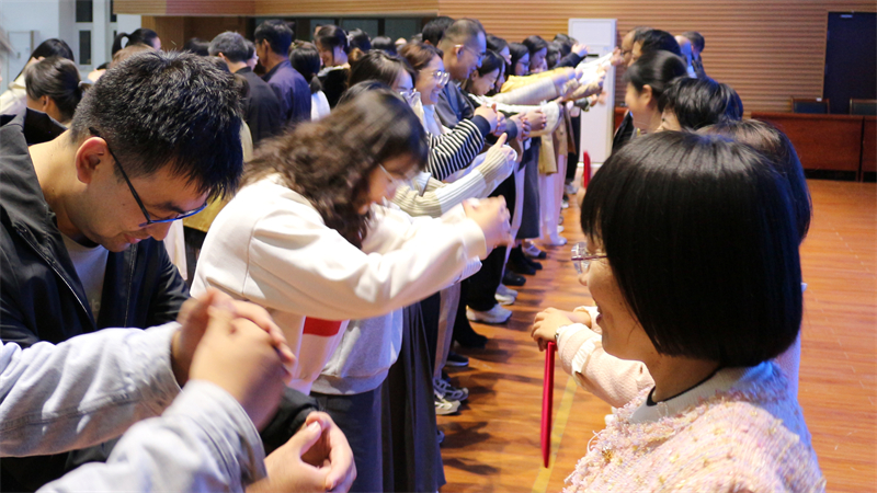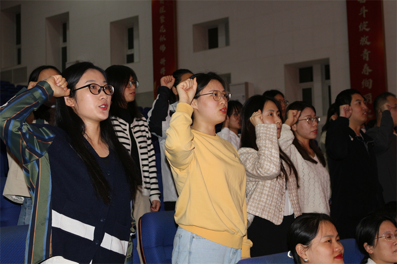 “我是一名光荣的人民教师,我庄严宣誓,忠诚党的教育事业,贯彻党的教育方针,履行教师神圣职责……”活动最后,在张丹丹老师的带领下,全体青年教师庄严宣誓,铮铮誓言,振奋人心、催人奋进,尽抒青年教师立德树人、培根铸魂、为党育人、为国育才的雄心壮志。