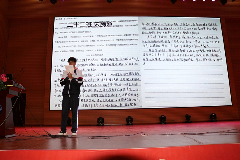 在元旦晚上的新年畅想环节,大屏幕上展示的是部分同学们对2024年的规划与展望:“回首过去的2023年,我有过收获、也有过失落,但2024年,我想成为一个崭新的自己!”“不负父母、不负芳华,在最美的年华,成就最完美的自己。”“我要让父母因我而骄傲,我要带给父母最好的生活。”“让我们努力奋斗、努力学习,在2024年再创佳绩,不负年华,不负青春。”一段段感人的话,标志着每一位学子已燃起了内心的激情——为梦想而拼搏。
