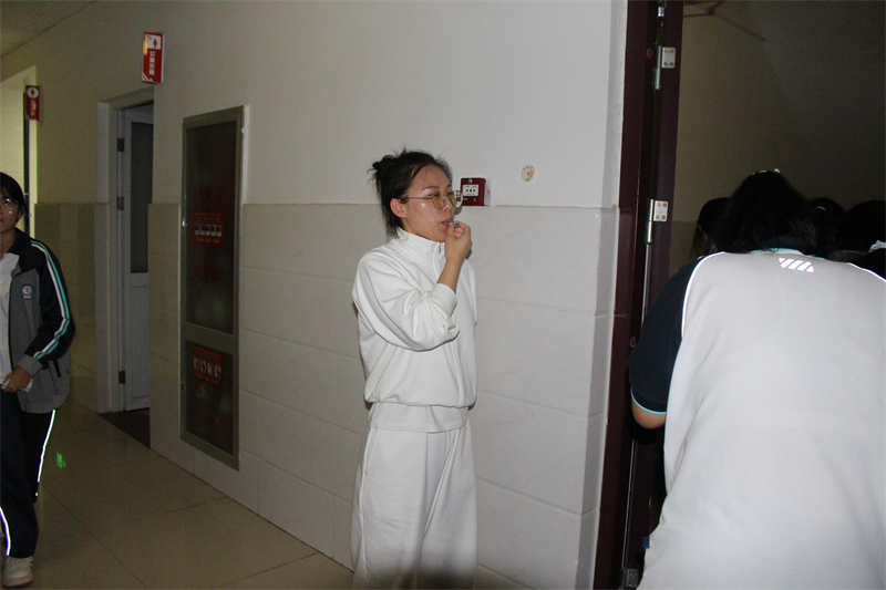 20时55分,随着一声清脆哨响,应急疏散演练正式启动。高一级部各宿舍学生闻声即动,快速取出提前备好的湿毛巾捂住口鼻,弯腰低姿向疏散出口移动。在楼层值班教师与班主任的全程引导和“保持间距、切勿拥挤、听从指挥”的反复提醒下,学生严格按照规定路线,从宿舍楼四个疏散出口快速撤离。抵达指定集合地点--学校篮球场后,各班班长迅速清点人数,确认无误后第一时间进行了上报。整个疏散撤离过程组织严密、衔接顺畅,全程无碰撞、踩踏等安全事件发生,充分体现了演练的规范性与实效性。