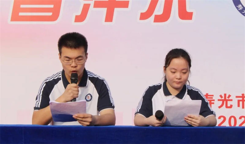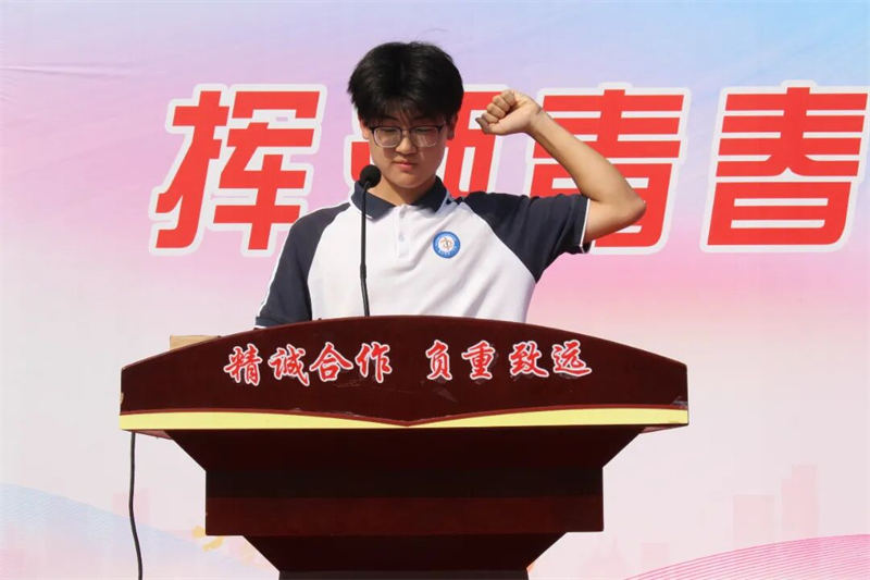 随后,牟晨硕同学代表全体运动员郑重宣誓:在运动会的各项比赛中,严格遵守运动员规则,听从指挥,服从裁判,团结协助,增进友谊,公平竞争,争创佳绩。学生裁判员代表王依萱同学庄严宣誓:将恪守体育道德,以公正之心执裁,以专业之态裁判,坚决服从大会指挥,严格遵守竞赛规则与裁判员纪律。铿锵有力的铮铮誓言,不仅彰显着学校严谨公正的体育风尚,更传递出师生们顽强拼搏、永不言弃、事争一流的奋斗精神。