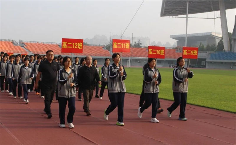 29日上午,在《运动员进行曲》的激昂旋律中,国旗仪仗队、鼓乐队、花束队、彩旗队、裁判员方队、各班运动员方队依次经过主席台。全体队员精神抖擞、口号嘹亮,以整齐的步伐与昂扬的姿态,充分展现了二中学子朝气蓬勃、奋勇争先的精神风貌。