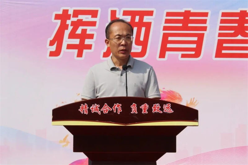 升旗仪式结束后,学校党委书记张建波发表了热情洋溢的开幕致词。他强调,一年一度的秋季田径运动会不仅是学校延续多年的传统盛事,更是展示各班精神风貌与综合素养的重要窗口,为同学们提供了绽放青春活力、锤炼意志品质的广阔舞台。张书记对全体师生提出三点殷切期望:一是全体运动员牢固树立“安全第一”的意识,严守竞赛规则,赛出风格,赛出水平;二是裁判员和工作人员恪尽职守,公正裁决,确保赛事公平有序;三是全体同学文明观赛,热情助威,争创精神文明班级。最后,他预祝本届运动会取得圆满成功。