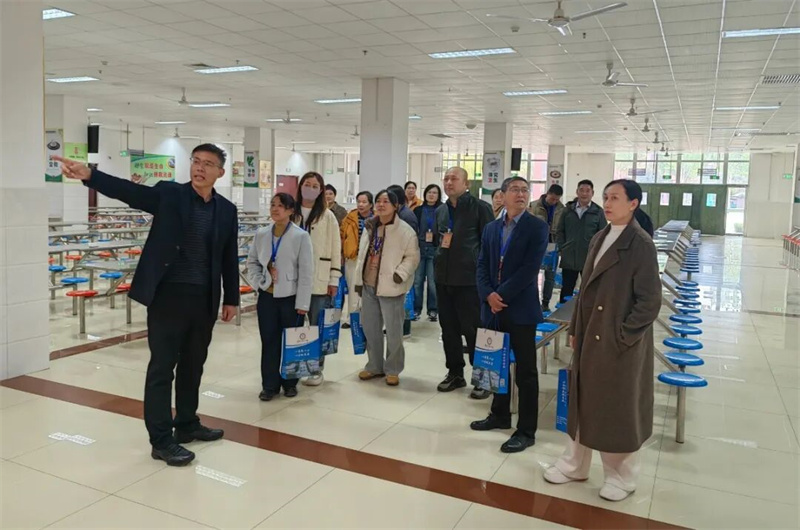 信任与责任在彼此心间传递,凝聚成一股坚实的教育合力。仪式结束后,张建波书记、李怀春校长陪同家委会委员们实地参观了校园环境、大课间活动、学生教室、宿舍及餐厅。委员们对优美的校园环境、教师饱满的工作状态及温馨的住宿条件赞不绝口。在篮球场,委员们驻足观看学生在大课间进行的跑操、立定跳远、单杠、跳绳等活动,对学校为提升学生身体素质所采取的举措给予了高度认可;在餐厅参观环节,张书记详细介绍了日常管理规范、食品安全流程及“师生饭菜同价”政策,并邀请委员们与学生共进午餐,零距离体验校园餐饮服务。