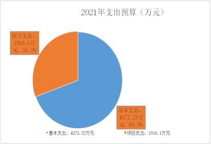 2021年支出预算为6288.33万元,其中:基本支出4372.23万元,占69.53%,项目支出1916.1万元,占30.47%。